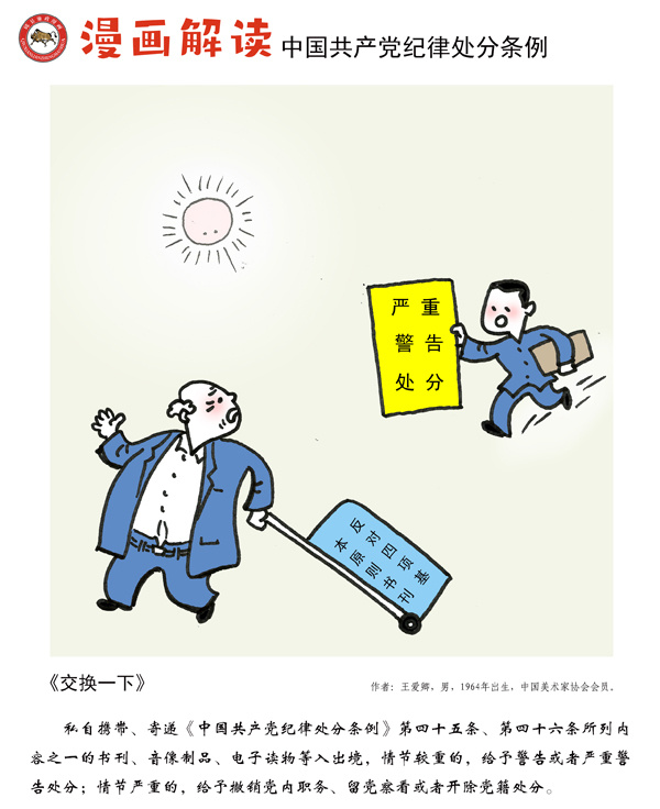 紀(jì)律是我們黨的生命線,加強(qiáng)紀(jì)律建設(shè)是全面從嚴(yán)治黨的治本之策。為深入貫徹落實(shí)十九屆中央紀(jì)委四次全會(huì)關(guān)于加強(qiáng)黨紀(jì)國(guó)法教育的部署要求,強(qiáng)化黨規(guī)黨紀(jì)的學(xué)習(xí)宣傳、貫徹執(zhí)行,使鐵的紀(jì)律真正轉(zhuǎn)化為黨員干部的日常習(xí)慣和自覺(jué)遵循,中央紀(jì)委國(guó)家監(jiān)委網(wǎng)站聯(lián)合河北省紀(jì)委監(jiān)委,以漫畫(huà)形式對(duì)《中國(guó)共產(chǎn)黨紀(jì)律處分條例》進(jìn)行解讀。