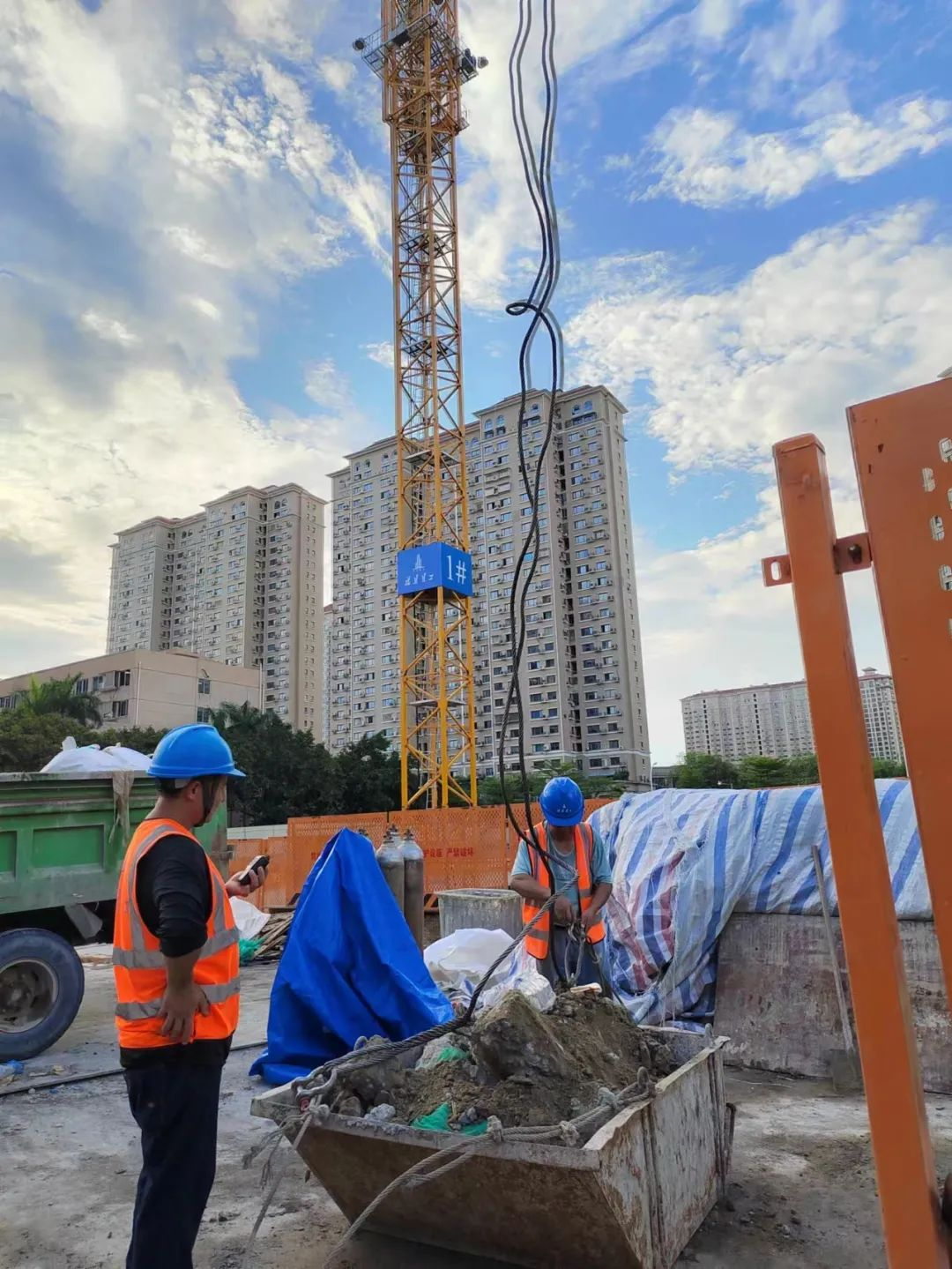 垂直運(yùn)輸機(jī)械指揮、施工現(xiàn)場作業(yè)人員聯(lián)系全部配套使用對講機(jī)通話來降低噪音......