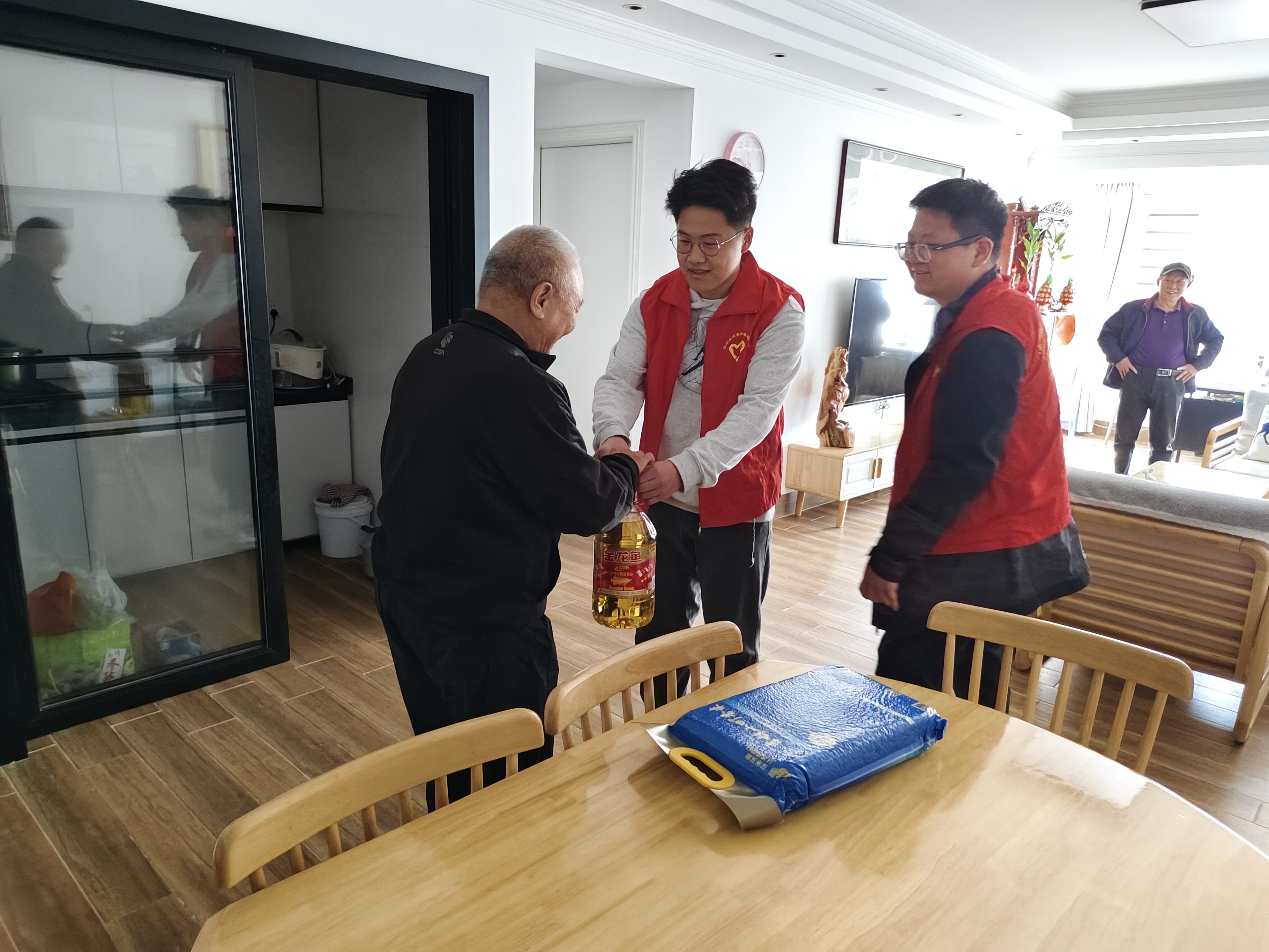第三組團員青年走進困難黨員家中,為他們送上大米、食用油等慰問品,與他們親切交談,聆聽老黨員訴說他們那個時代的雷鋒精神,詳細了解他們的生活情況、身體狀況和一些實際需求,用實際行動為老黨員送上溫暖。