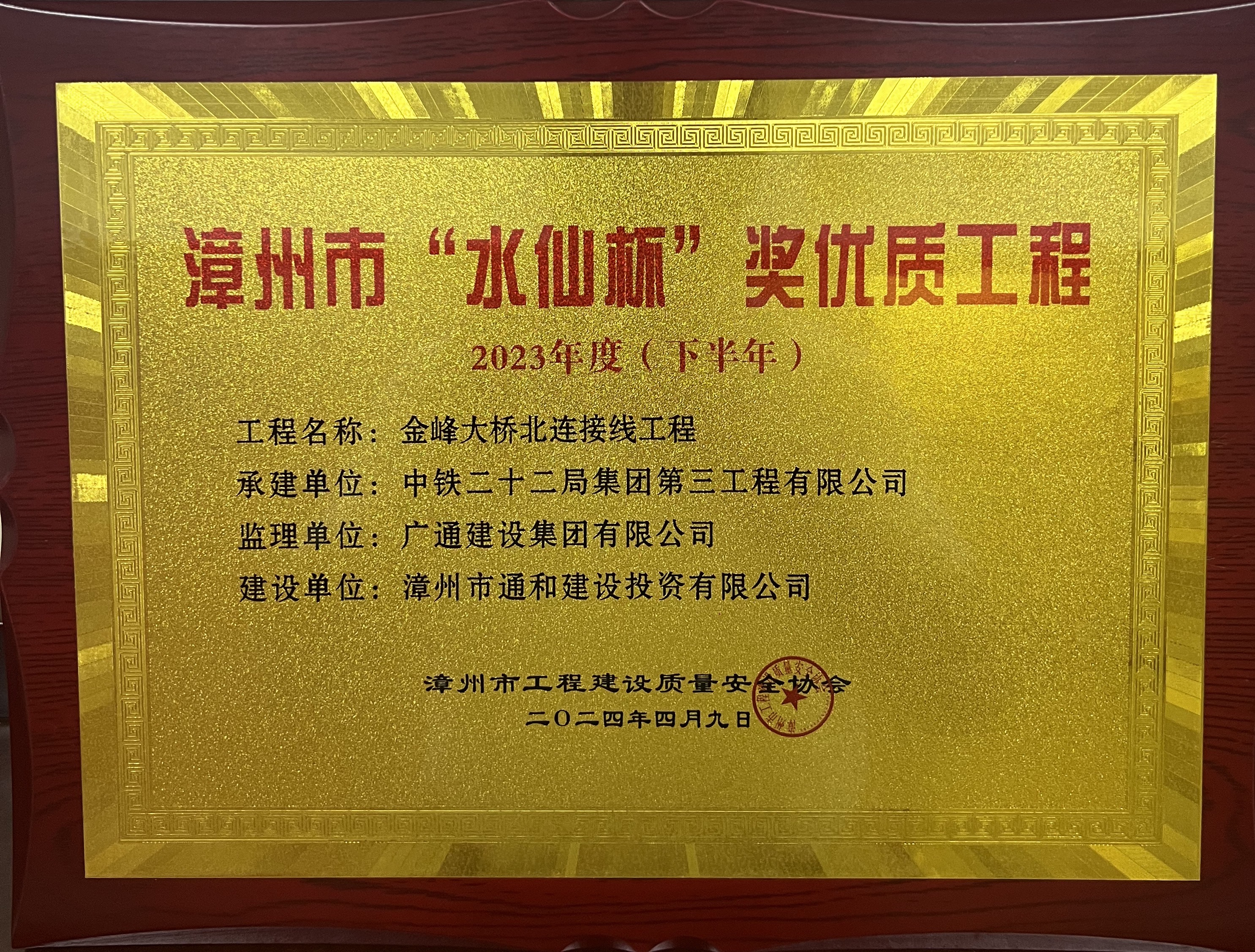 近日,漳州市工程建設(shè)質(zhì)量安全協(xié)會公布2023年度(下半年)漳州市“水仙杯”獎優(yōu)質(zhì)工程獲獎名單。其中,漳州交通集團權(quán)屬交發(fā)建設(shè)集團金峰大橋北連接線工程及漳州市東環(huán)城路及其接線工程A1(A1-1、A1-2)合同段雙雙獲評漳州市“水仙杯”獎優(yōu)質(zhì)工程。