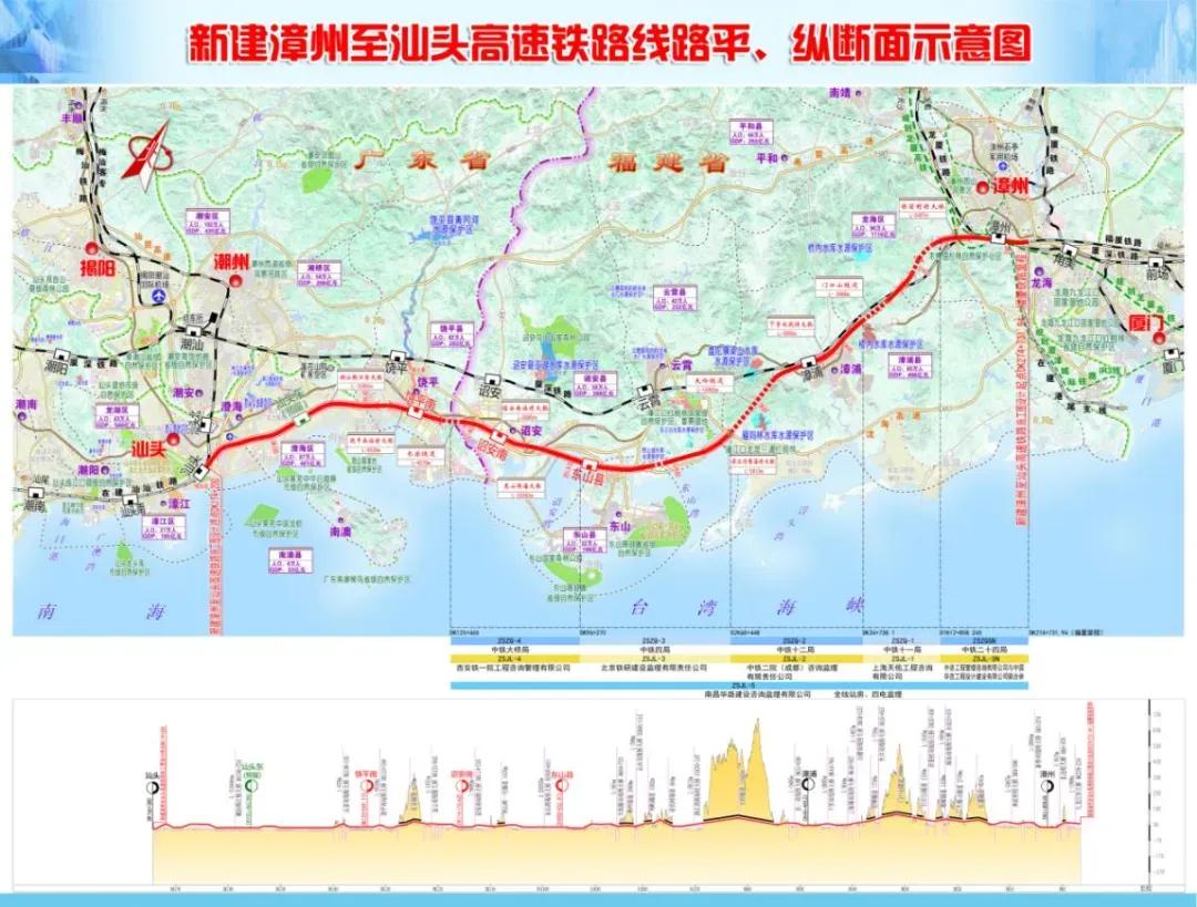 漳汕高鐵項(xiàng)目北接福廈高鐵,南連汕汕高鐵,全長約175公里(福建段全部在漳州市境內(nèi),長約127.2公里),共設(shè)漳州、漳浦、東山縣、詔安南、饒平南、汕頭東、汕頭等7座車站(漳州、漳浦、汕頭為既有站,汕頭東為預(yù)留站,其余為新建站),設(shè)計(jì)時(shí)速350公里,計(jì)劃工期4.5年。