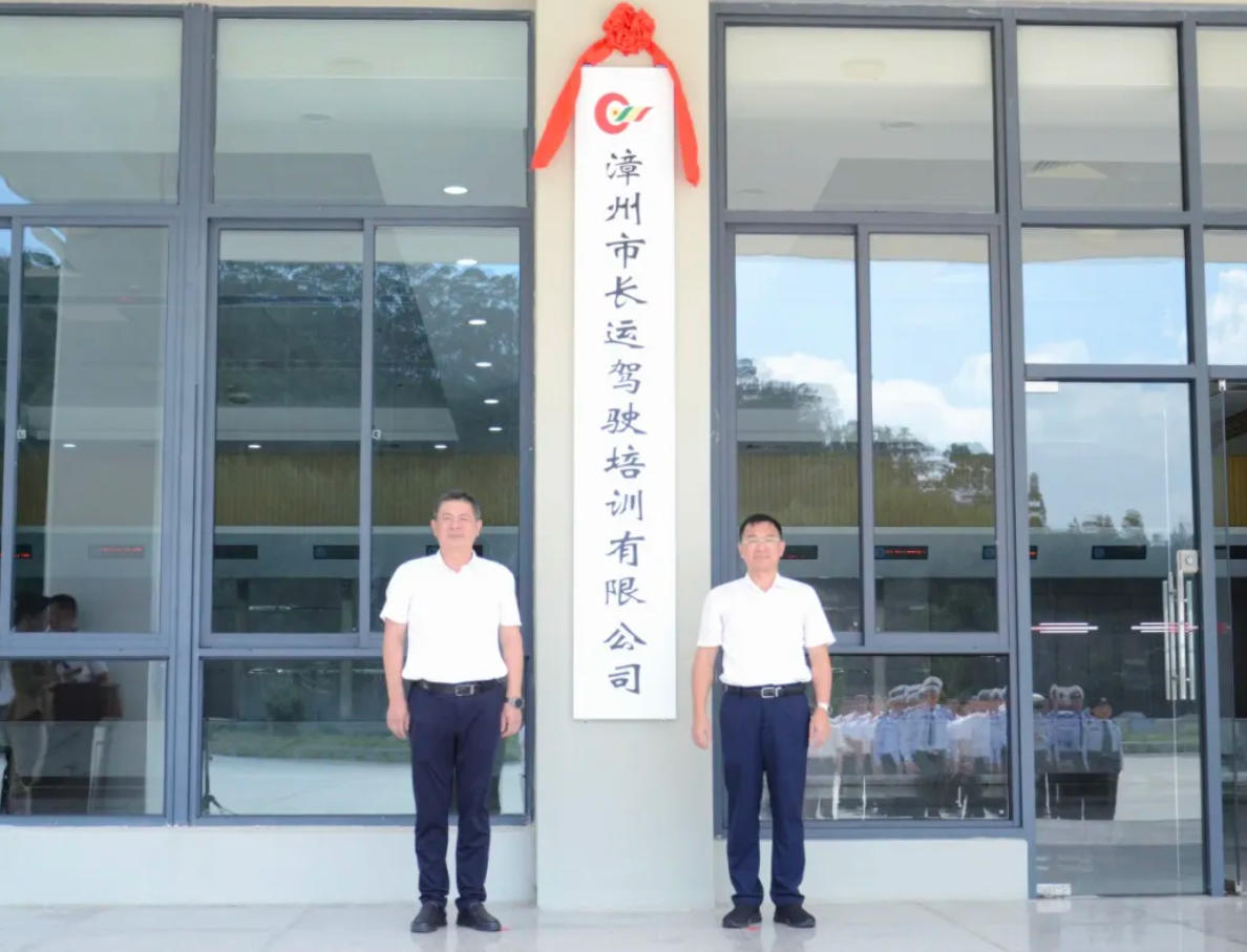 常山開發(fā)區(qū)黨工委書記莊躍慶和漳州交通集團(tuán)黨委書記、董事長方泗平共同為漳州市長運(yùn)駕駛培訓(xùn)有限公司揭牌。