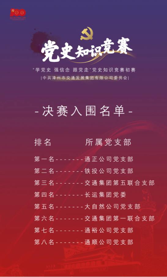 集團(tuán)黨委把黨史知識(shí)競(jìng)賽作為推動(dòng)全集團(tuán)黨史學(xué)習(xí)教育的有力抓手,集團(tuán)黨史學(xué)習(xí)教育領(lǐng)導(dǎo)小組辦公室以黨史學(xué)習(xí)教育指定學(xué)習(xí)材料為依據(jù),編輯完善比賽題庫(kù),組織所屬各黨組織黨員積極開(kāi)展自學(xué)備賽,持續(xù)掀起學(xué)習(xí)熱潮。本次黨史知識(shí)競(jìng)賽初賽,由單選題、多選題、填空題三種題型組成,以閉卷形式從知識(shí)競(jìng)賽題庫(kù)中隨機(jī)抽選試題,對(duì)參賽選手黨史知識(shí)掌握情況進(jìn)行全面檢驗(yàn)。比賽中,參賽選手沉著、冷靜作答,充分展現(xiàn)了交通人的理論功底和良好的精神風(fēng)貌。黨員們通過(guò)參加黨史知識(shí)競(jìng)賽,促使自己在系統(tǒng)學(xué)、深入學(xué)、持續(xù)學(xué)上狠下功夫,不斷推進(jìn)黨史學(xué)習(xí)教育走深走實(shí)。